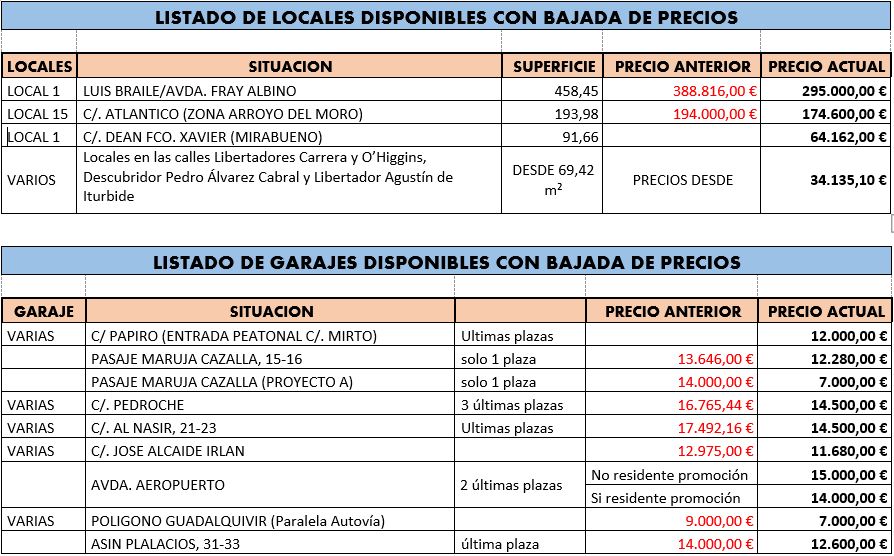 Nota: Los precios de venta indicados no incluyen I.V.A., y los precios de alquiler serían mensuales más I.V.A. |